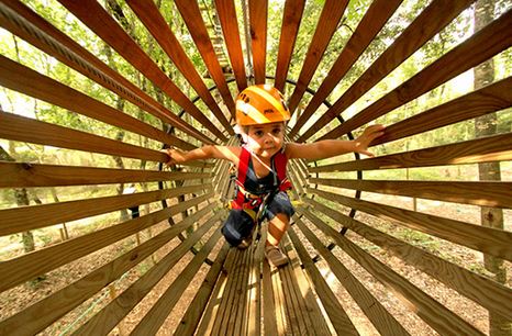 Les enfants pourront évoluer d’arbres en arbres à l’aide de différents ateliers comme la tyrolienne , le parcours de filet, le pont de singes, l’escalade…